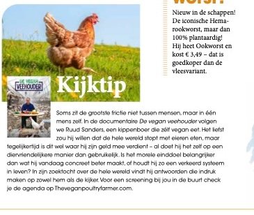 DE VEGAN VEEHOUDER: "Soms zit de grootste frictie niet tussen mensen, maar in één mens' Kijktip in Vriendin Magazine DE VEGAN VEEHOUDER: "Het is niet meer te verdedigen wat we met al die dieren doen" Lees het hele interview DE VEGAN VEEHOUDER: Hoe gaat het met de boerderijen van Kipster? Klik hier voor de podcast De Vegan Veehouder "Soms moet je gewoon kiezen en gaan, ook al is dat naïef" Klik hier voor het interview De Vegan Veehouder”. Kun je de veehouderij beëindigen door 'm te verbeteren? Klik hier voor de podcast FLCaféXXL: De Vegan Veehouder-Mag een vegan boer nog kippenhouden Klik hier voor de podcast ‘Onze kippen moeten dood wanneer ik vind dat ze dood moeten. Wat is daar diervriendelijk aan?’ Lees het hele artikel Première ‘De Vegan Veehouder’ in Schouwburg Venray Lees het hele artikel Documentaire over vegan veehouder in Venray Lees het hele artikel
